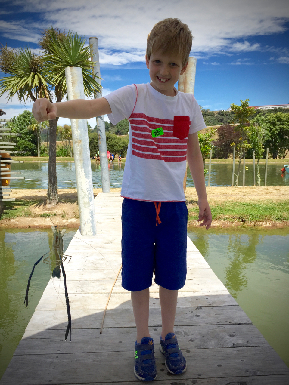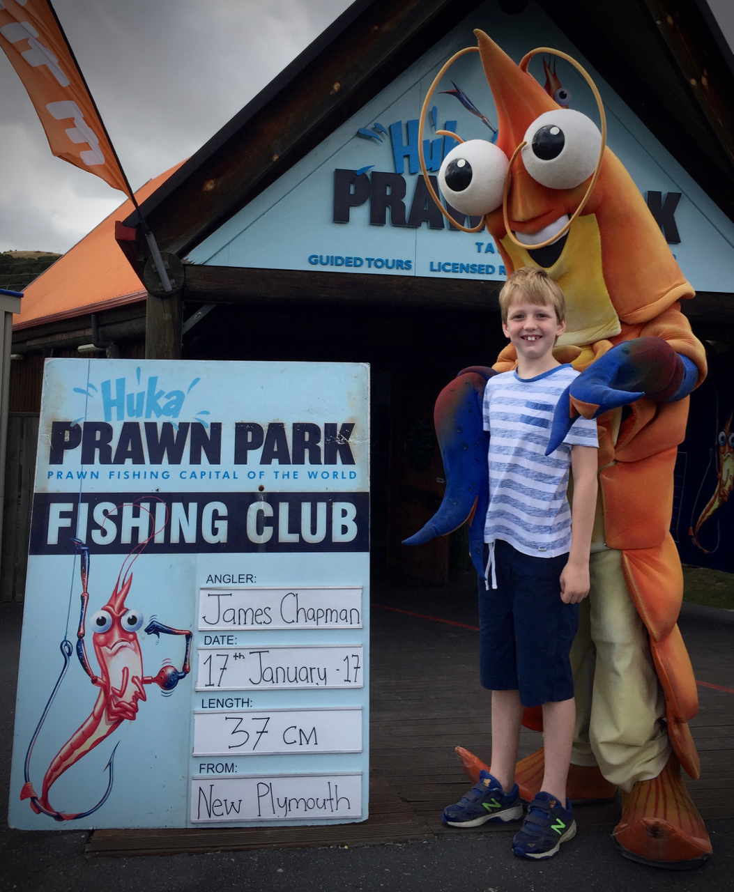 On the 17 of January 2017 I went to the Huka Prawn Park. Dad, Mum, Daniel and I went fishing for prawns. Dad caught one prawn and I caught one prawn. Dad caught a small prawn and I caught a very huge prawn. When I caught the the prawn it was nearly going to pinch me with it’s long blue pincers. Before we caught the prawn I saw a sign with the biggest prawn caught. It had a person called Jackson C, from Wellington, who had caught a 35 centimetre prawn. But I caught a whopper 37 centimetre prawn. On the 18th of January I got a special treat. I got to go to the prawn park to get a photo with my name on the board. I have caught the biggest prawn this summer!